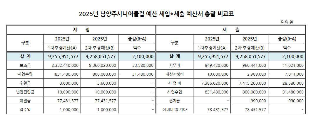 남양주시니어클럽 2025년 2차 추가경정 예산 공고