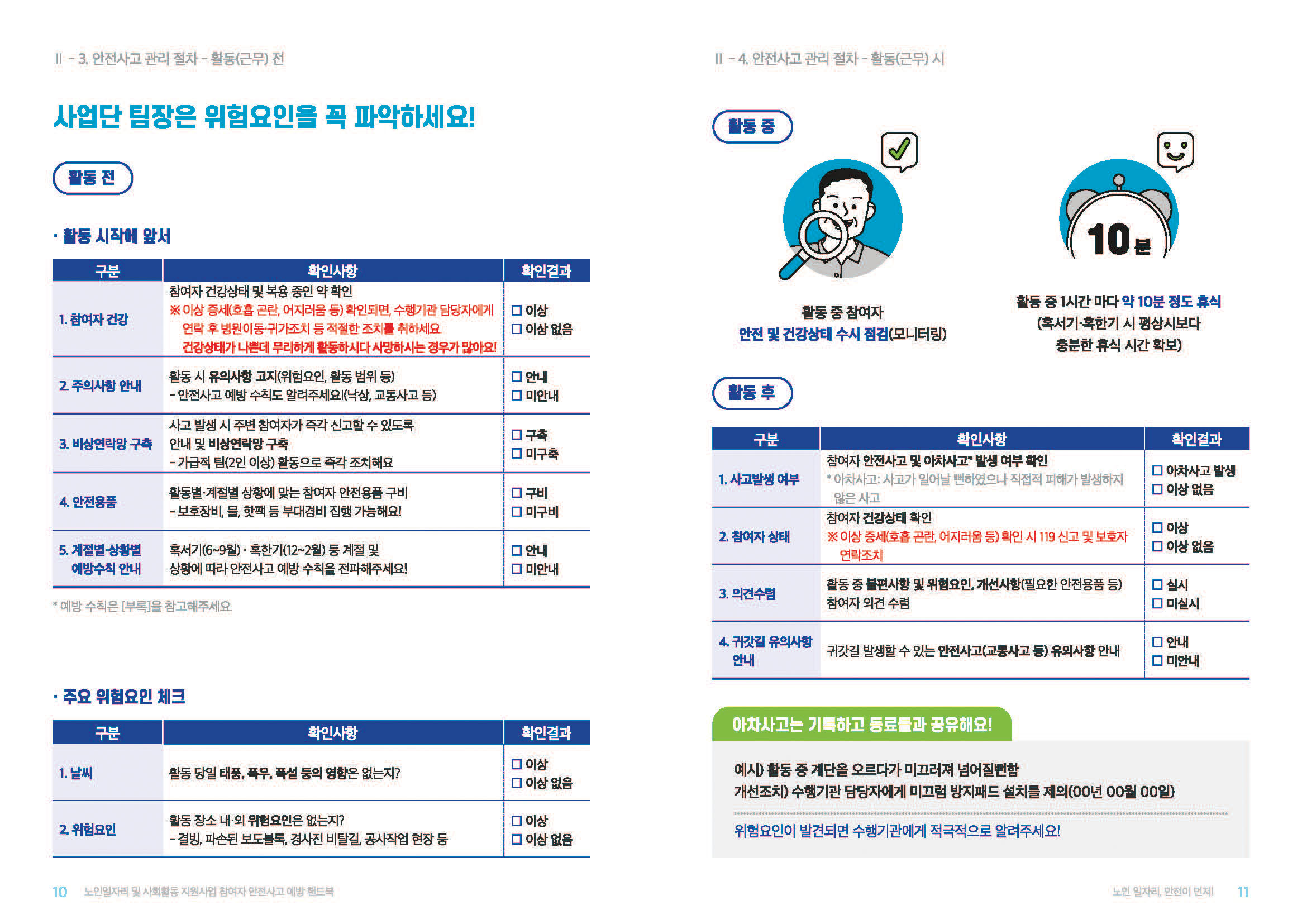 노인일자리 및 사회활동 지원사업 안전사고 예방 핸드북 페이지 정보 작성자 관리자 댓글 0건 조회 1,521회 작성일 24-01-17 17:26 목록 본문 이전글2024년 설 명절 생산품 택배 발송 마감 안내 24.02.05 다음글노인일자리 부적격, 부정수급 바로알기 23.08.23 댓글 0 댓글목록 등록된 댓글이 없습니다.