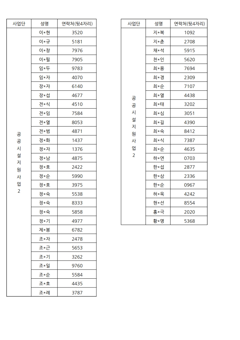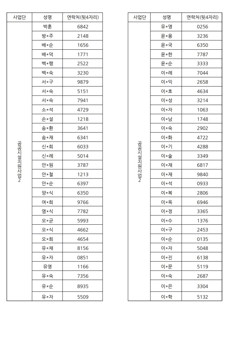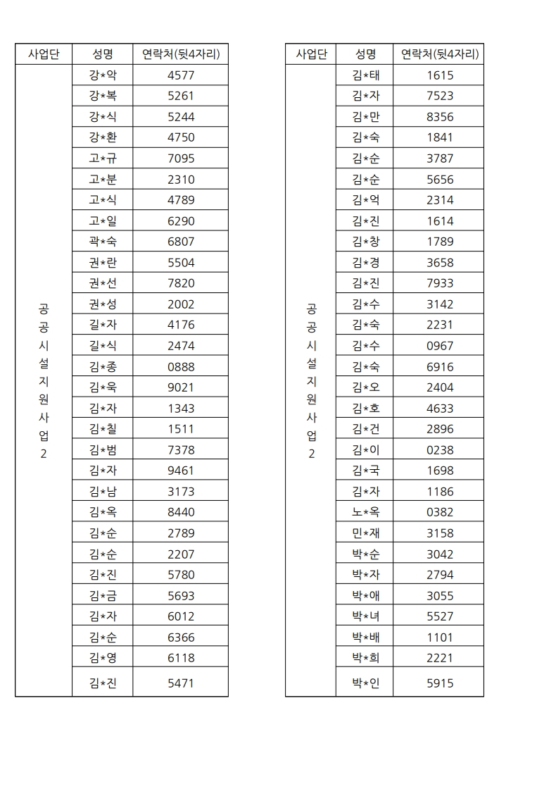 2025년 남양주시니어클럽 공익활동사업 합격자 안내입니다.