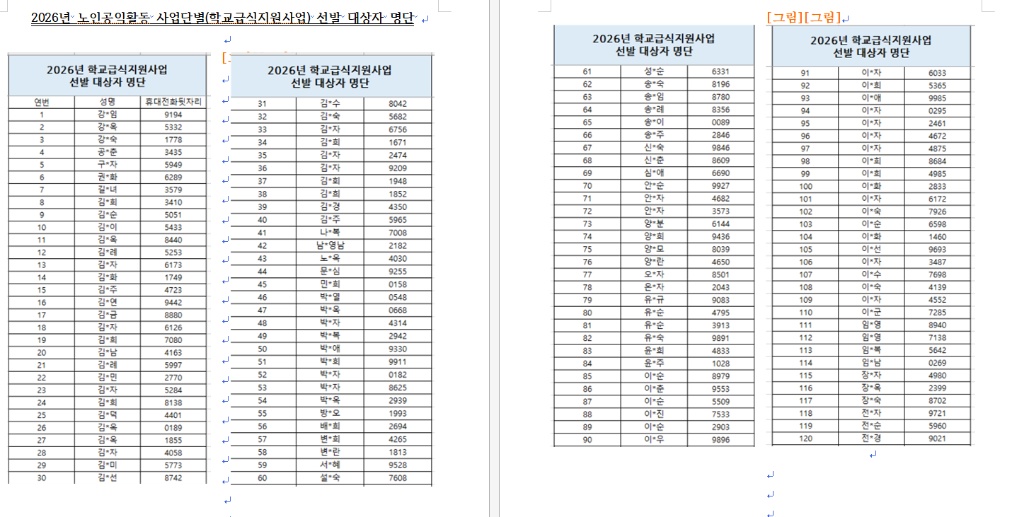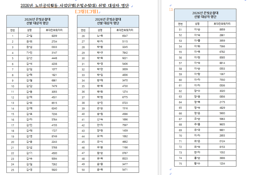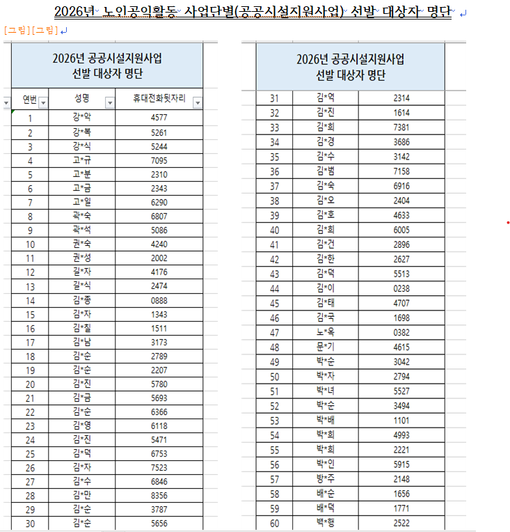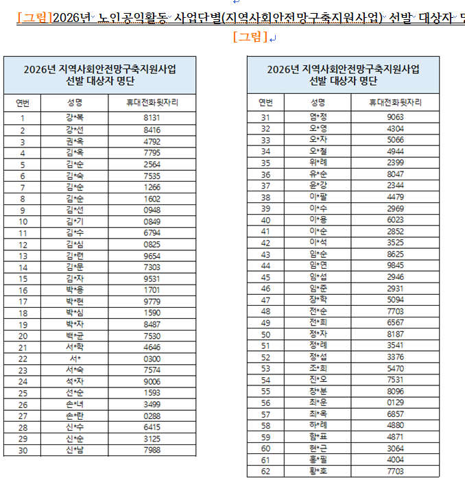 2026년 남양주시니어클럽 ★노인공익활동사업★ 최종 합격자 안내